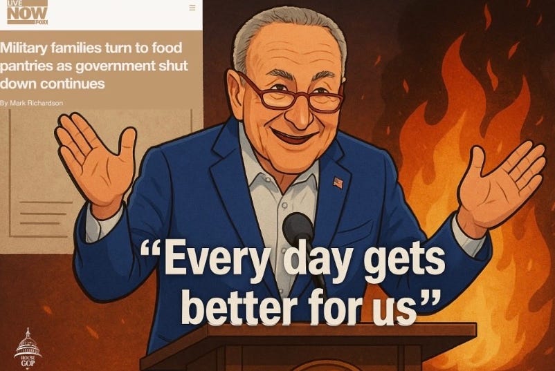 DEMS. On the Senate floor, Democrats quoted the Republican Governor of Oklahoma, Kevin Stitt, who told the New York Times yesterday that he opposed Trump’s move to send National Guard troops from outside states to Chicago.