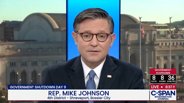 MILITARY PAY. But some Republicans are itching to get back to Capitol Hill in order to put pressure on Democrats about the shutdown. One idea is to pass a bill which would fund paychecks for members of the armed services. So far, Speaker Johnson doesn’t want to go down that road.