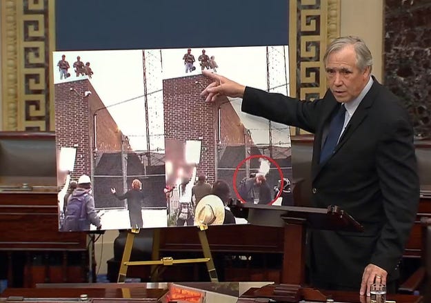 PROTEST. Following Wyden, Sen. Jeff Merkley (D-OR) criticized the actions of federal agents in dealing with protesters in Chicago. Merkley showed pictures of a Presbyterian minister standing in front of an ICE facility who was suddenly shot in the head with pepper balls by federal agents standing on the roof.